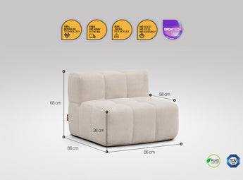 A modulok egyszerűen összekapcsolhatók, így stabilan tartanak egymás mellett – nincs szétcsúszás, csak masszív kényelem. Csúszásgátló felületük és ideális súlyuk gondoskodik róla, hogy a kanapé a helyén maradjon, mégis könnyedén átrendezhesd, ha új hangulatra vágysz.