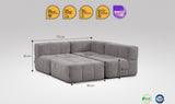 A modulok egyszerűen összekapcsolhatók, így stabilan tartanak egymás mellett – nincs szétcsúszás, csak masszív kényelem. Csúszásgátló felületük és ideális súlyuk gondoskodik róla, hogy a kanapé a helyén maradjon, mégis könnyedén átrendezhesd, ha új hangulatra vágysz.