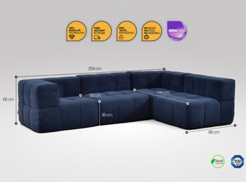 A modulok egyszerűen összekapcsolhatók, így stabilan tartanak egymás mellett – nincs szétcsúszás, csak masszív kényelem. Csúszásgátló felületük és ideális súlyuk gondoskodik róla, hogy a kanapé a helyén maradjon, mégis könnyedén átrendezhesd, ha új hangulatra vágysz.