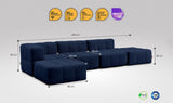 A modulok egyszerűen összekapcsolhatók, így stabilan tartanak egymás mellett – nincs szétcsúszás, csak masszív kényelem. Csúszásgátló felületük és ideális súlyuk gondoskodik róla, hogy a kanapé a helyén maradjon, mégis könnyedén átrendezhesd, ha új hangulatra vágysz.