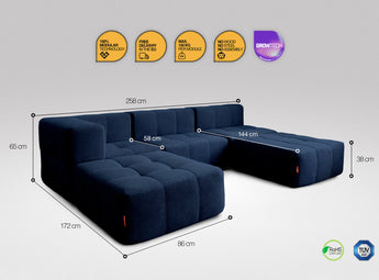 A modulok egyszerűen összekapcsolhatók, így stabilan tartanak egymás mellett – nincs szétcsúszás, csak masszív kényelem. Csúszásgátló felületük és ideális súlyuk gondoskodik róla, hogy a kanapé a helyén maradjon, mégis könnyedén átrendezhesd, ha új hangulatra vágysz.