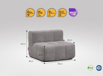 A modulok egyszerűen összekapcsolhatók, így stabilan tartanak egymás mellett – nincs szétcsúszás, csak masszív kényelem. Csúszásgátló felületük és ideális súlyuk gondoskodik róla, hogy a kanapé a helyén maradjon, mégis könnyedén átrendezhesd, ha új hangulatra vágysz.