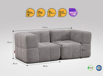 A modulok egyszerűen összekapcsolhatók, így stabilan tartanak egymás mellett – nincs szétcsúszás, csak masszív kényelem. Csúszásgátló felületük és ideális súlyuk gondoskodik róla, hogy a kanapé a helyén maradjon, mégis könnyedén átrendezhesd, ha új hangulatra vágysz.