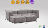A modulok egyszerűen összekapcsolhatók, így stabilan tartanak egymás mellett – nincs szétcsúszás, csak masszív kényelem. Csúszásgátló felületük és ideális súlyuk gondoskodik róla, hogy a kanapé a helyén maradjon, mégis könnyedén átrendezhesd, ha új hangulatra vágysz.