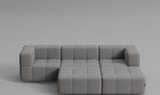 A modulok külön-külön dobozban érkeznek, így könnyen mozgathatók szűkebb lépcsőházban vagy ajtón keresztül is. A lábtartót, a közép- és a sarokelemet egyszerűen egymás mellé lehet helyezni – nincs szükség rögzítésre, a kanapé a súlyából és kialakításából adódóan stabilan egyben marad.